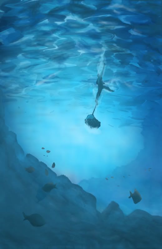 Paint/Draw a diver or a fish or whatever in this underwater cave. Sorry, about the bad quality of the referece material but since you have to repaint it anyway it shouldn’t be to much of a problem.
