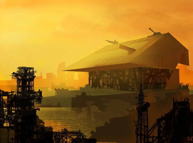 First up, house as fort. About an hour in PS, experimenting with custom brushes to get a nice industrial-looking silhouette. I might try and develop this more, and turn it into a matte painting or at least a detailed landscape–neither of which I’ve done before.