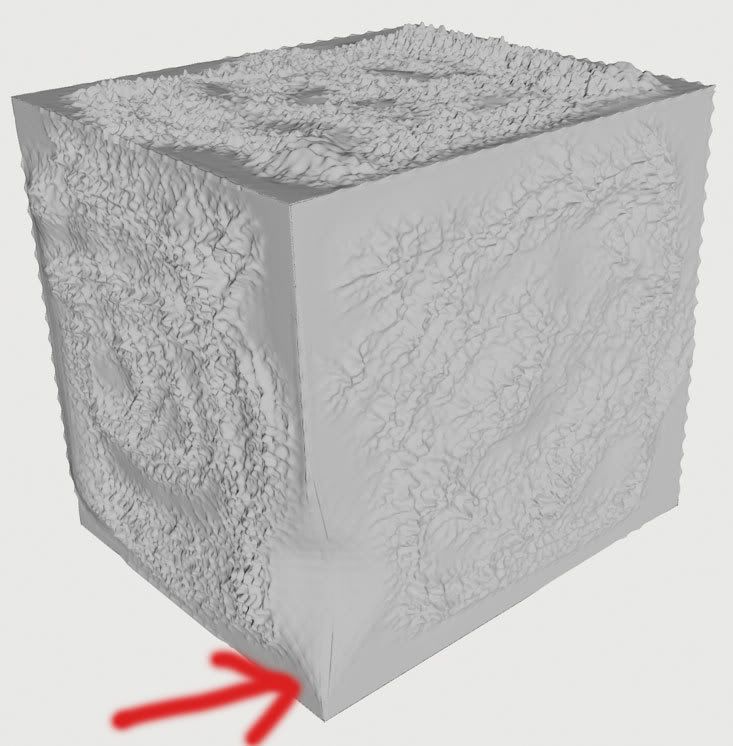 We can see the problem in the displacement map with kind of doted lines.
