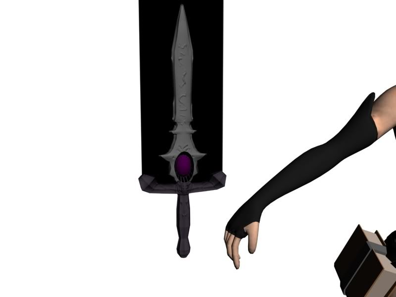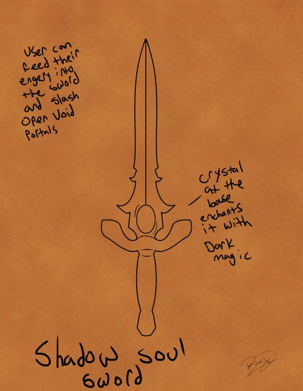Alvina recently the new owner of the Shadow Soul sword. It is an ancient artifact of great power. Imbued with dark and void power the Shadow Soul is a thousand times stronger than any normal blade. The user can also feed their dark magic into the sword to power it up. Once it is fully charged the sword can slash open a void portal that will suck anything in it's path into a dark abyss. This sword was said to be originally owned by an old and ancient demon, how Alvina has come to posses it is a mystery.