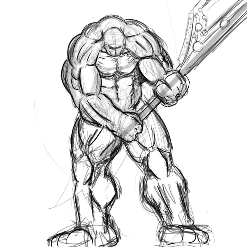 First concept (excuse the crappy concept art) I think I wanna make him much more bulky.