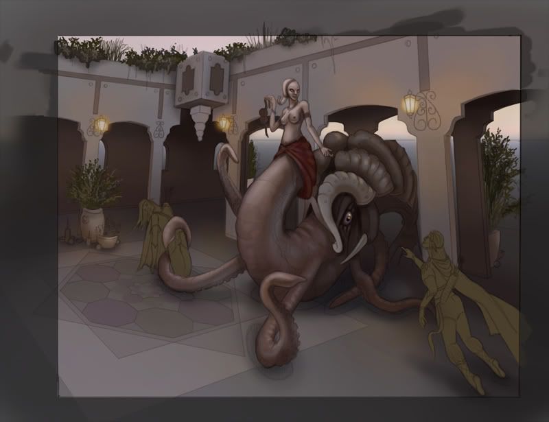 Well, I’ve finally decided to go for a morrocan-style inner courtyard, sop here’s the lineart: