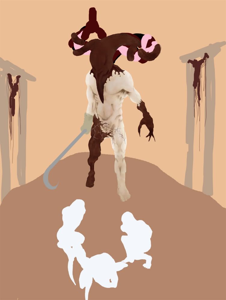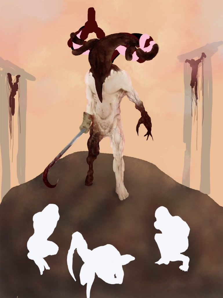 Also, I made an executive decision to get rid of the pets, from the peice if not the concept on a whole. There pallette was too ‘bright’ compared to him, and distracted too much. It just didn’t work so I took them out.