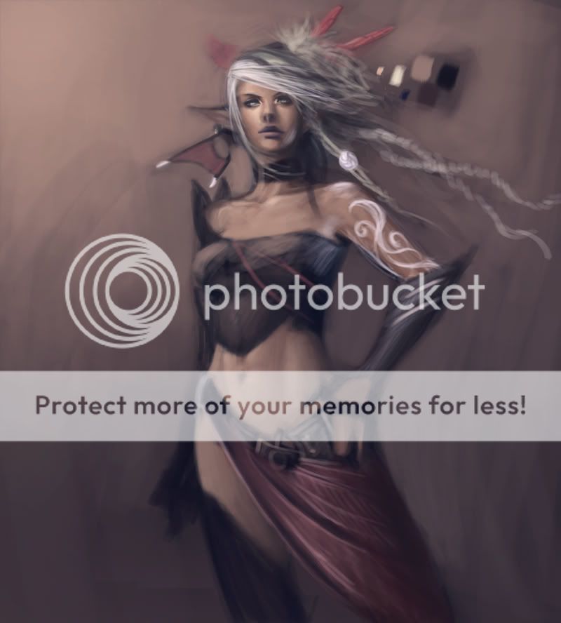 Here’s my latest work on DWIV! I’m working on setting the mood right, balancing out the picture, detailing, and cleaning. I haven’t figured out what her sword is gonna look like! stupid me…that’s what happens when you put off the contest til the end.