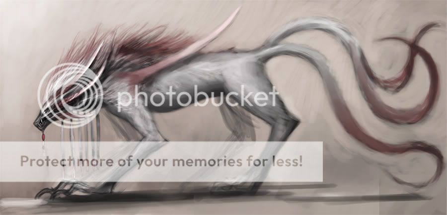 , that this composition (April 16 @ 7:22pm) doesn’t grab me as much as that last pinup. I’ve seen your work and I know you’re gonna kill the hell out of it in terms of color, composition, etc., but it’s the attitude that I don’t quite feel with this one. Add a more dramatic chiaroscuro effect to her posture. I may be way off so don’t take it too seriously. Oh and that wolf is BADASSS! And another thing, I don’t know if you’ve tried Painter, but I’m getting these really nice textures that you can try out on your final. I think it brings character to the artpiece when blotches and random other things are there in terms of paint–it makes the art look fast and natural, and makes the artist look confident in their ability to show beauty even with messy areas.