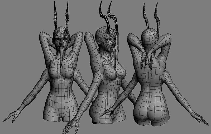 Nice Sketches… The 3 breast concept in the first sketch is kind of new, a bit distracting and since she is a devil that might actually work out… something tells me that the victim would be suddenly distracted with the strange feature there for a second atleast…