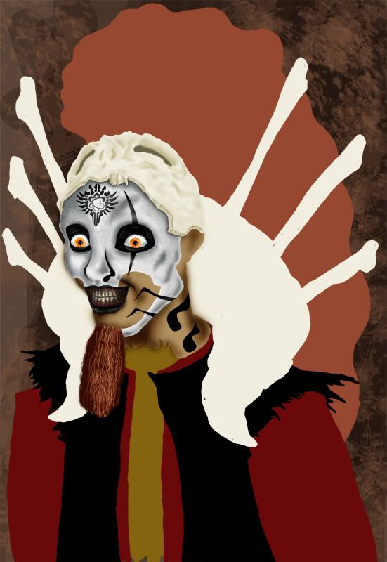 haven't touched the background yet, the logo will be going on her belly, or arm. : )