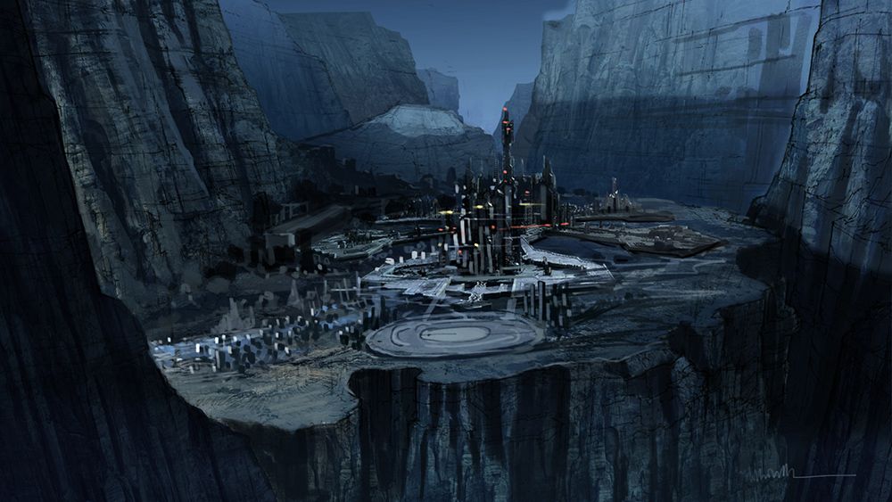 I really like your first concept, it has a nice composition with great depth and scale. Although I have to say your recent concept has a very dynamic angle and I think that would make for an interesting view