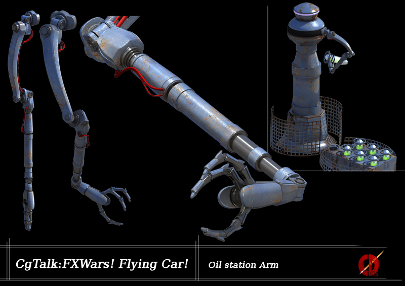 The station is not a bulding but an industrial robot, I must add the robot arm and billboard