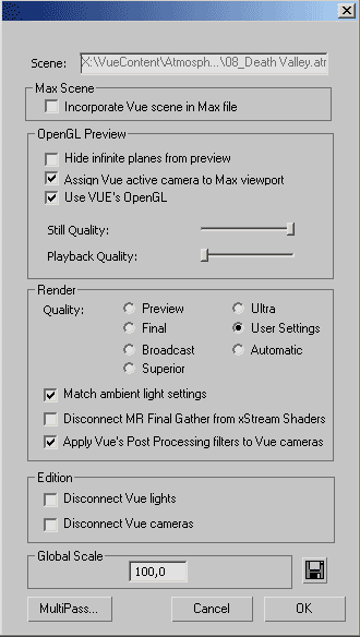 Well, I don’t know it’s done in Max, but in C4D, you have the option to match Vue’s and Cinema’s AA settings, and I don’t use it, because teh Vue element are not properly AA’d, instead I use Vue’s own AA setting, and Cinema’s AA settings. Of course this means you need to know how Vue AA works, but it looks a lot better this way.
