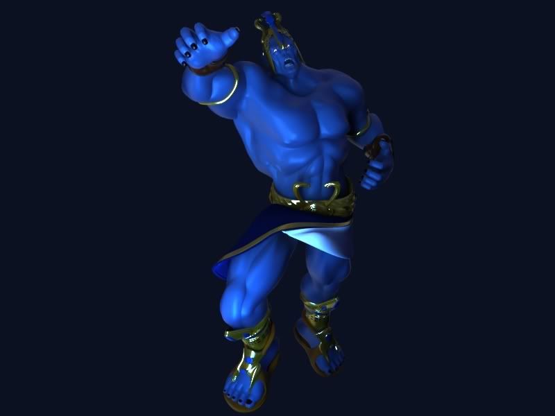 I dunno about blue, I gotta get a decent zombie colour. Im remodeling the torso now, update that soon, the symbol on the chest will be a tatoo or brand, prefer the brand, its more mystic… The face will be mudboxed to pit in creases and wrinkles, bandages are coming, so is some other cool stuff, stay tuned.