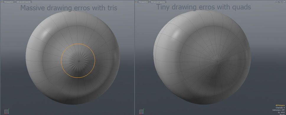 edit: I realized my images were fuzzy, so threw in a closeup example of the poles, in tris and quads.