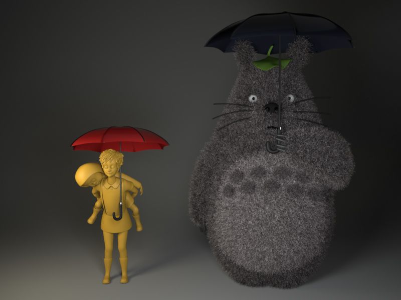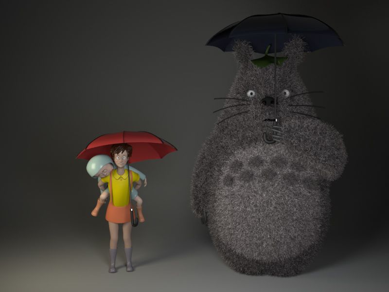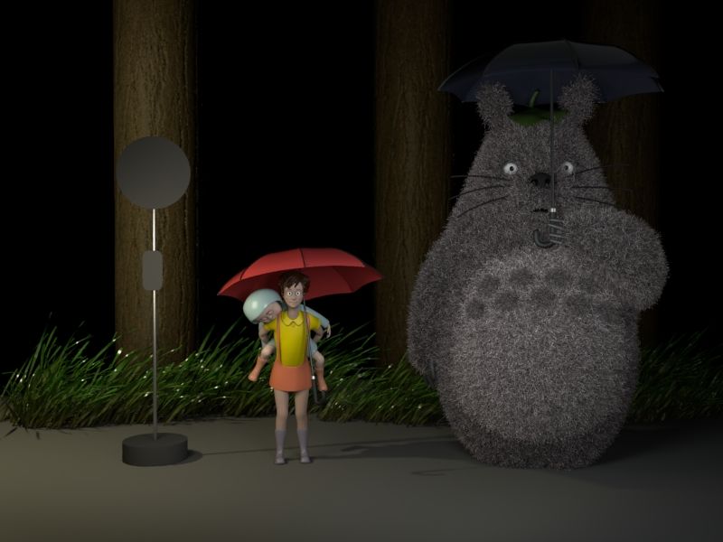 My first Studio Ghibli film I watched when I was a kid. Going to do a diorama of Totoro and the girls at the bus station. Im going to attempt to do Maya hair and fur for Totoro instead of model it all.