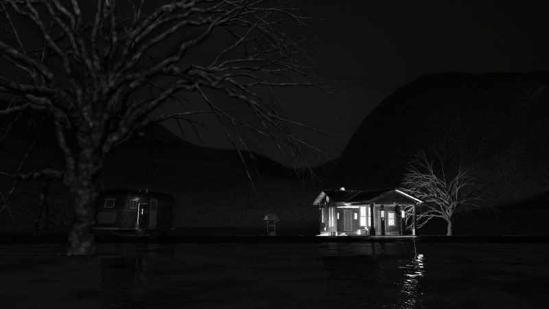 I worked most on the textures and lights in front of the house. I want pure B&W picture for now, maybe I’ll try warm and cold filters later. There’s no post work on this render.