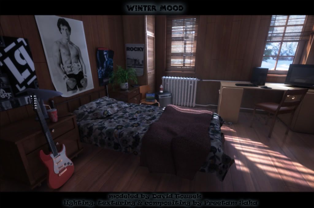 CPFitz14: Nice work!! Some thinks that i would change for now are the blanket’s texture, the middles poster texture and guitar’s material.