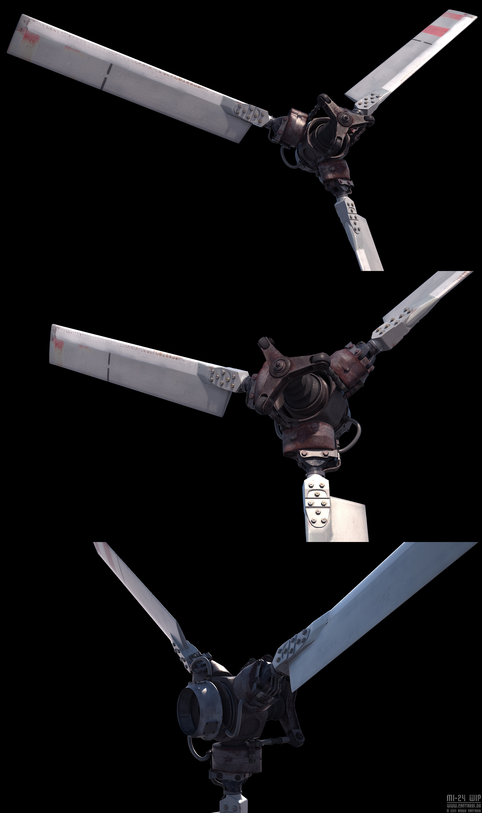 So finally I was able to sqeeze some time out of my schedule and worked a bit on the tail rotor. UVs were fun as they always are and here is the first version of the texture. Still some parts left to do, some more balancing required and so on…
