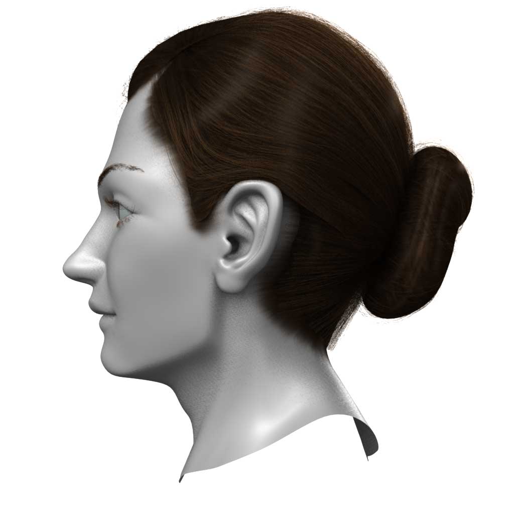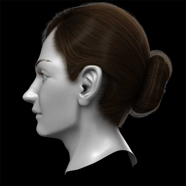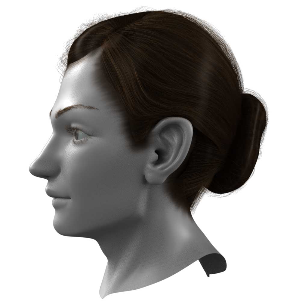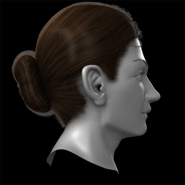 The original MAYA Hair style with a lot of fibers are baked on 6 NURBS surfaces’ texture.