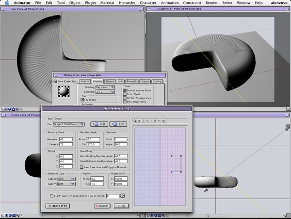 I’m not thinking about it from a revolve aspect…unless you want to create something like a torus that has an interior wall…Revolving with holes is only really beneficial with partial revolves or items where you wish to see a thickness. I’m more thinking about supporting holes in the cross section editor of Revolver in order to feed Mrs. Bebel. Remember, I’m wanting a more complete mini modeling solution in Animator. My hope is to get a family of related plugins that can handle revolving, extruding, and lofting. The big 3. Holes are best implemented with extruding and lofting. You know… for creating anything with an interior wall/surface. Although I haven’t tried it, Child entities from an outside modeling package would probably meet that need. But I want the ability to do it internally. Invigorator has the ability to generate holes in objects with its extrusions from eps files provided that the eps file was masked within Illustrator a specific way. Therefore object items requiring an interior wall/surface like the letter “Q” could be formed properly.
