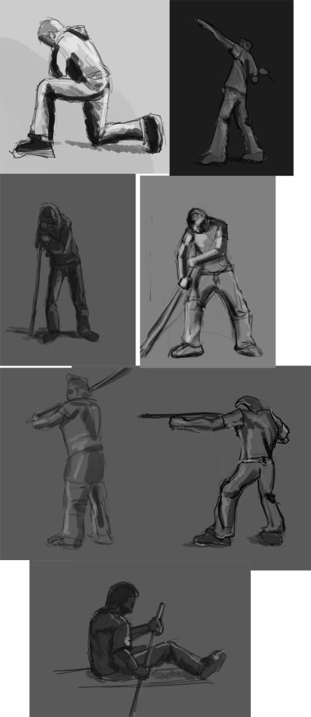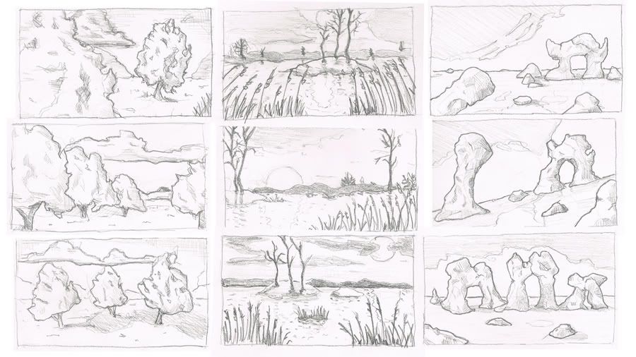 Image below is the current brainstorming that i did today. My workflow, finding reference, combining this to a few thumbnails, after that combining the best parts to one sketch where i add a little more detail. during this process i can start to think about the overall silhouette and final composition.