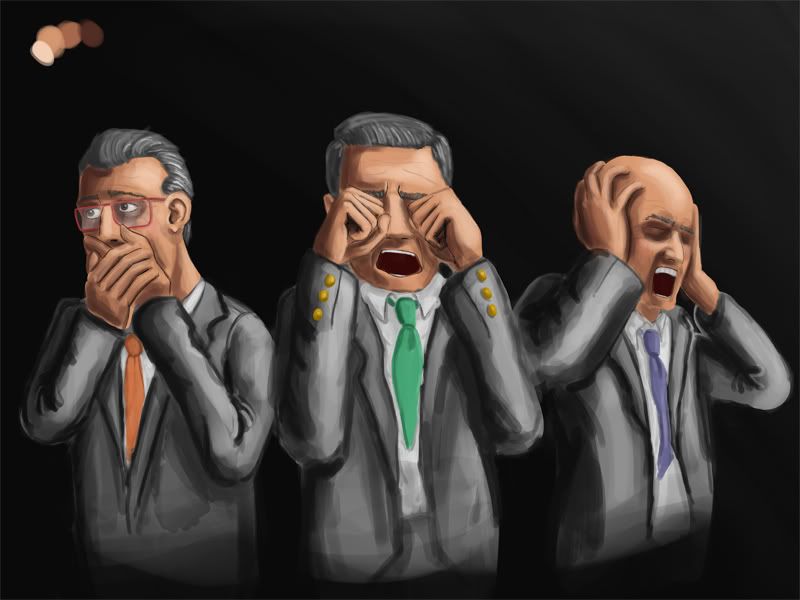 Remake the “Three monkey” artwork but with business men.
