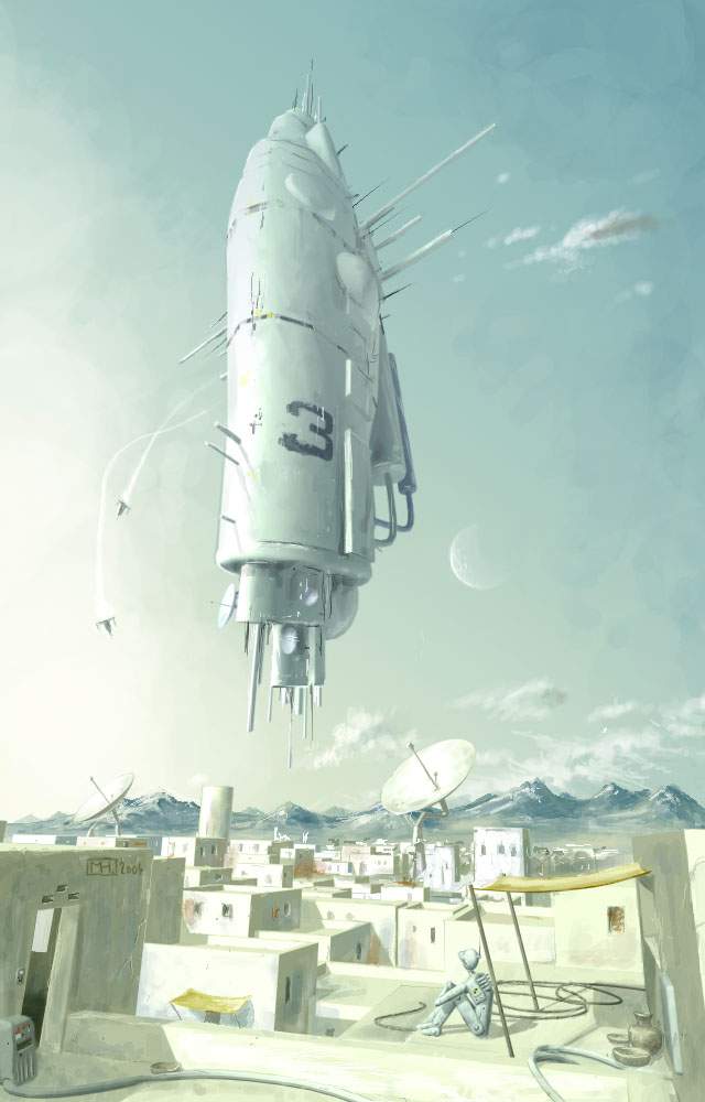 … and city was supposed to be non high tech … original version was without robot and antennas and cables … but it looked bit like Aliens take over Khabul so i added that stuff
