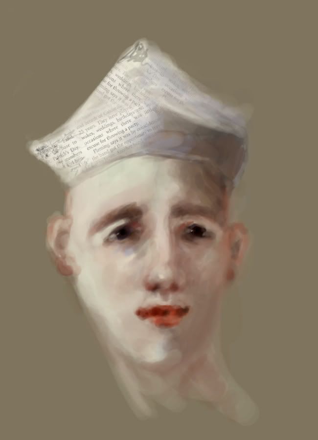 and this guy sort of came out [I didn’t use any references or anything, well apart from the newspaper texture]… don’t ask me why he’s wearing a newspaper hat either LOL
