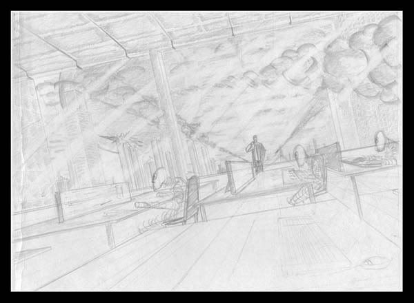 I like the “eye fish lens” perspective in your 3D previz, that can make a strange and cool scene