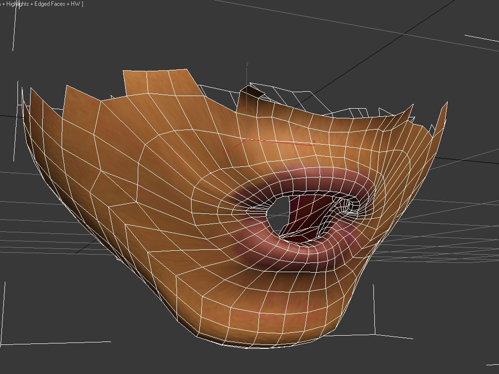 Hello all…I’m having some difficulty rigging a character’s mouth and I was hopping someone here could provide some insight into the issues. I’m trying to rig this character for a real time app using morph targets, and the corners of his mouth are giving me a multitude of problems. As you can see, when I bring the corners of the mouth from the default/smile position to make an “O” shape, the texture becomes very distorted and warped. Part of this is by necessity because I have to stretch out the verts around corners to make the lips puff out around all sides of the mouth (this is a specific request by the client).