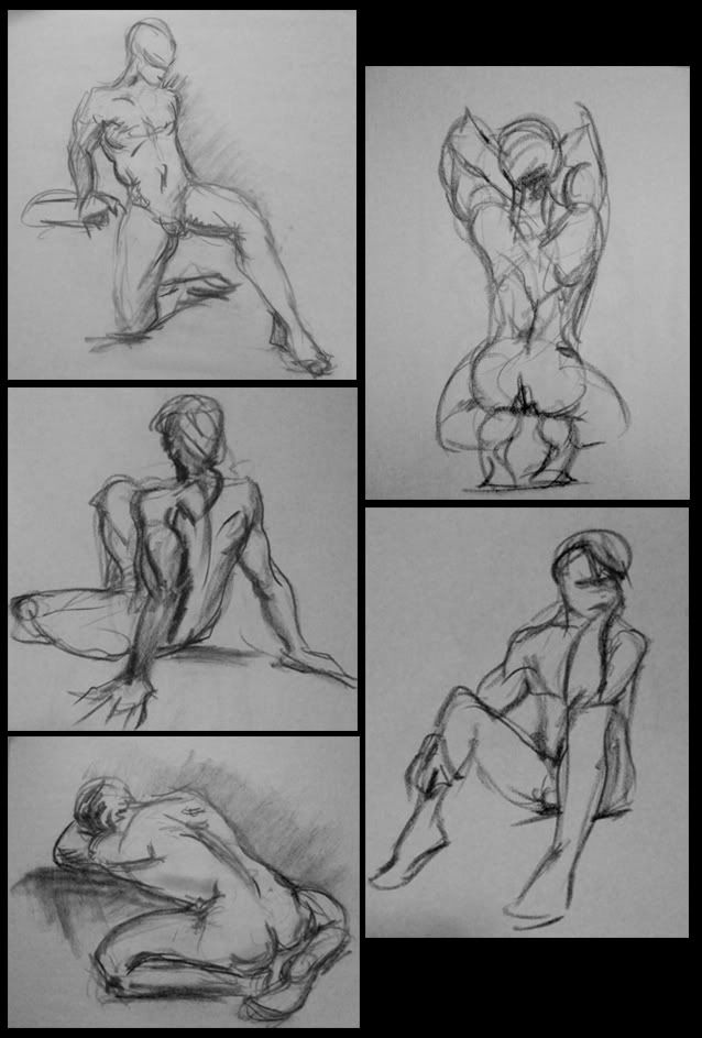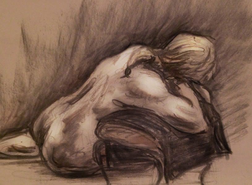 This was a really strange one, upside down! It was a great exercise though - everything was so odd that i had to completely throw away my preconceived notions about drawing the figure, and just concentrate on what I was seeing - which is the point, I guess.