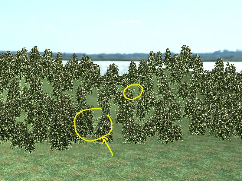 but the problem now is the rendering part. my trees are single polygon 2D textured, i used 1 jpg for the tree, and another alpha jpg for the transparency. after rendering, there seems to be artifact on the alpha part of the polygon.