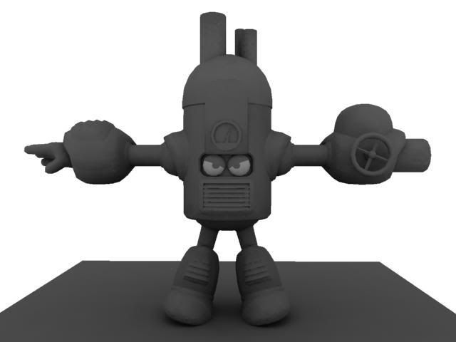 Thanks, Neo! I’m following the blockout I posted on the last page, where his arms just about touch the ground when relaxed. While that might be too long, it looked okay in the block out so I’m not worried; besides, I can always shrink them, if need be. And about the shoulders, my latest render is kinda blurry, but if you look closely :rolleyes: at the render at the top of the page you can see that the shoulders a bit jaggy (despite being a 12-sided circle!). Just seemed surprising to me; both that it wasn’t smooth-looking as the rest of him, and that I (seemed to) have enough polys left over to smooth it.