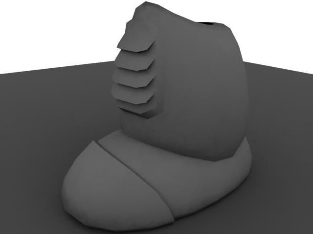 Alright, finally an update! I’ve still been working on the boots, trying to refine them to match the “old school stylee,” if I may. Here’s what I’ve got, at about 600 tris: