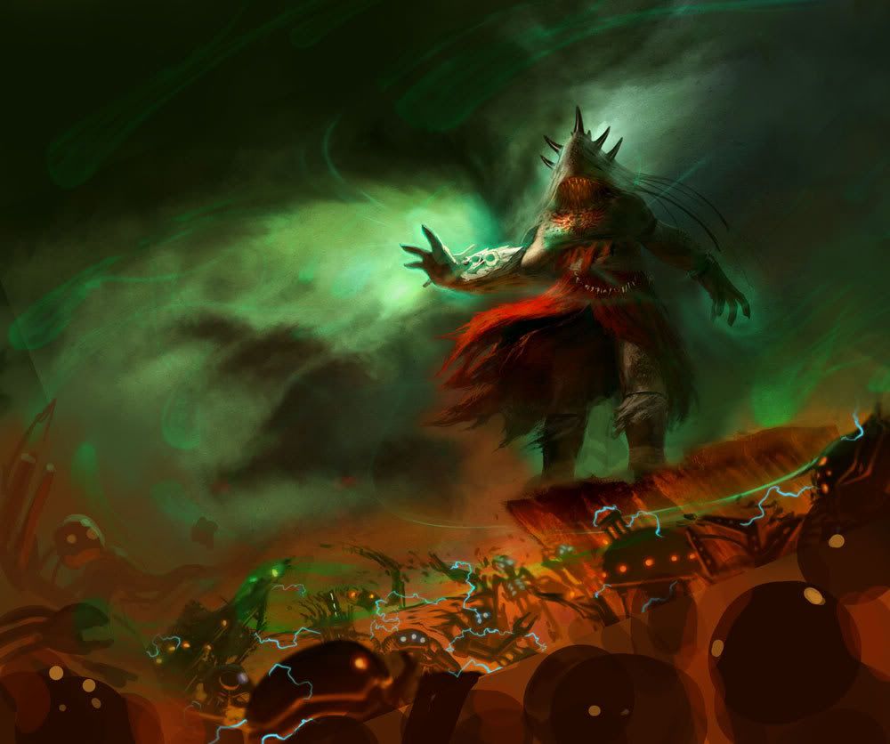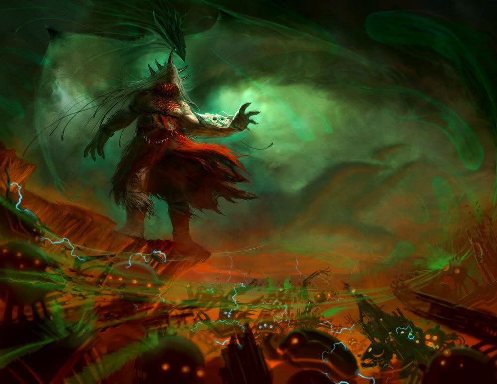 And here's the illustration wip so far... I'll post some of my process images later - it's gone through tons of changes. Still unhappy with many elements of it. I think those front green wisps look cheesy. I'm getting to the point where blatantly wrong and horrible things pass by me unnoticed, just because I've been looking at it for so long...