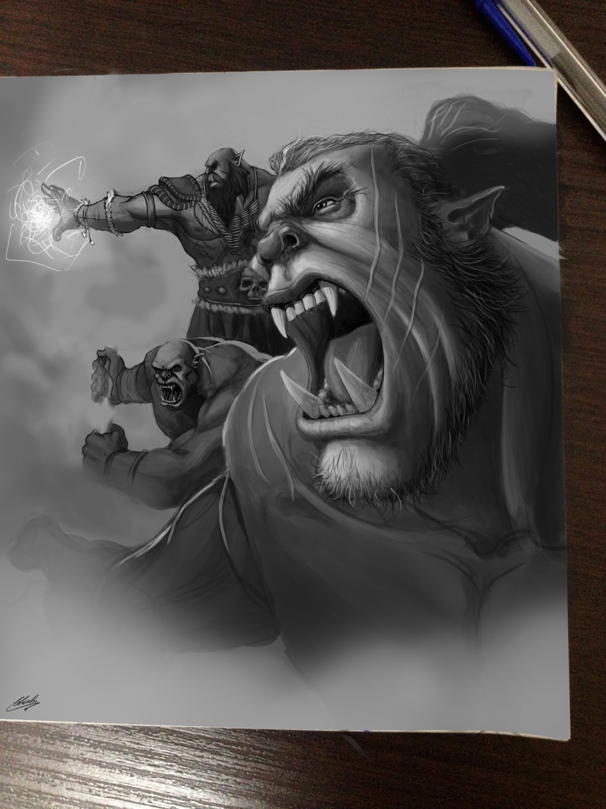 I’m trying to do an art like the orcs in World of Warcraft. I just got to have fun doing it in a notepad (note to because of cartoon drawing in the left corner) and I decided to paint it in the end. A friend of mine sugested me to draw a troll instead orc with a bow, maybe I’ll do that.
